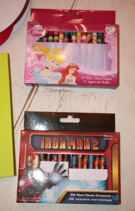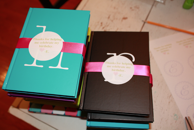 You see, she not only has a birthday party, we also celebrate at school. So, with all of the money that I shelled out for her party, I was looking for something inexpensive to give to her 13 friends in Kindergarten, particularly since all 13 would be at her party. The Mommy Gods were with me because with all of the prep for her party, I totally forgot about her school celebration. I went shopping the night before her birthday. As always, Michael’s did not let me down. I found these monogram journals, and a 24 pack of crayons in the dollar section… better yet- the crayons were on sale for $0.50 each! So I was able to give everyone a great gift for under $20!